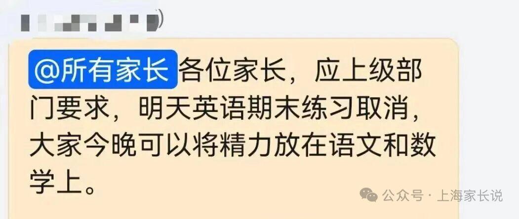 这两天,一张上海小学的“告知书”在家长群里刷屏。三到五年级期末只考语文、数学,原定的英语期末评价取消。消息一出,如一颗深水炸弹般把家长们震晕了。大家的反应明显分化。有人觉得终于可以不用复习英语了。但也有人很焦虑:如果学校都不考英语了,孩子还要不要学?还有没有动力学?长期以来,上海是中国英语教育水平最高的城市之一,上海小学生英语基础普遍较好,家长对英语投入也...